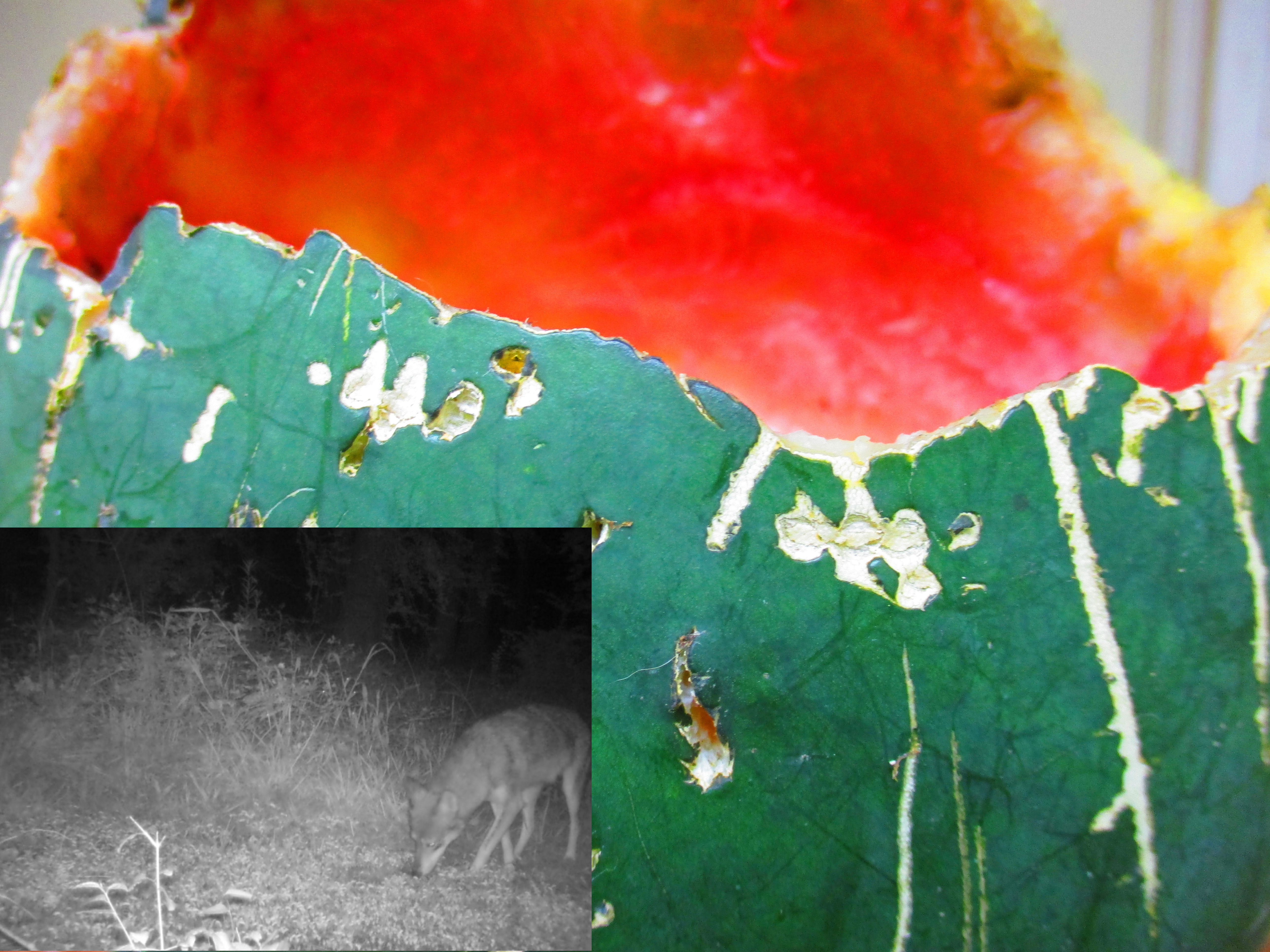Coyotes typically weigh 25-40 pounds and come in a wide variation of colors. Coyotes are extremely adaptable and will call just about anywhere home, from a farmer’s woods around pastures, to a highly populated neighborhood. A coyote’s diet also varies depending on their habitat. A coyote that lives close to people in a neighborhood will have a diet made up of trash and possibly small animals, such as outdoor cats or rodents. A coyote that lives in a less populated rural area will have a diet consisting of small rodents, rabbits, bugs, fruit and vegetables, and occasionally livestock and chickens.